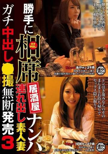 解放感で一杯の人妻が居酒屋でしっとり一人飲み。強引な相席にだって驚きつつも嬉しさは隠せない! 契約完了に上機嫌の保険外交員・Eカップあやサン29歳、一人旅の解放感に初めての浮気・Hカップゆめサン27歳の2名収録!