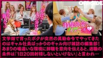 「はぁ?精子溜まりすぎてんだろ!ヌイてやるから早くチ●ポ出せよ!」文学畑で育ち、文芸の部署にいたボクが突然ギャル雑誌の編集部に異動命令!?社員は当然ギャルばかり!いきなりみんなの前で手コキ発射させられてしまったボクが退職を願い出ると…1日20回射精するまで辞められないよ?と謎のノルマが!?副編集長に騎乗位中出し!キララさんのフェラで口内発射!エロメガネのミレイさんにも口内発射!社内で5P乱交セックス開始!ちんぐり返しで手コキ発射!騎乗位中出し!正常位中出し!バック&騎乗位で中出し!ついには6Pハーレム乱交に展開で追撃中出し!みんなはボクの退職を応援して20回射精まで手助けするよ?と言いながらボクのチ●ポを好き勝手に勃起させて絶頂しまくって性欲発散しているだけのように思うのは気のせいでしょうか…?そして、ついにその時は来ました!「どーするの?最後の1回」そして、ボクは心とは裏腹に勝手に息子が「出さないです。出しません。」と答えていたように思います。。。。「よく言った!会社に残るって事ね!」何度も中出しさせてくれる優しいヤリマンギャルたちに囲まれて、会社に残る事に…「基礎から徹底的に叩き込んでください!」「チ●コと一緒でカタいな~www」