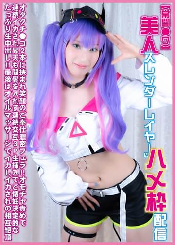 今回は、前回ご好評をいただいた美人スレンダーなオタクレイヤーさんの第二弾でございます。ちょっと近寄りがたいツンとした美人系だと思いきや、部屋にフィギュアが並び、イベントへと足繁く通い。かわいい女の子に目が無いというドの付くオタク女子な彼女。いやぁ超絶ギャップ。古の言葉で言うならギャップ萌えです。いいよね。いや、控えめに言って最高です。そんな彼女はエロにも積極的でございまして、今回はカメコ2人に囲まれての3P生セックスでございます。衣装はVなtuberの常闇●ワさんです。今回はご持参いただいた衣装でございます。2次元、3次元、2.5次元問わずかわいい女の子も大好きという男オタクのような素晴らしい感性を持っている彼女。やはりVにも押しはいるようで、それも女性Vtuberだそうです。同性を推すというのは女性に多い特徴だとは思いますが、美少女について力説しているのがまた美人さんというのはなんだか、いいな……としみじみなります。じゃあその推しのキャラでコスプレしようと提案したのですが、それは無理。恐れ多いとこれもまたオタク的感性で拒まれてしまったので今回は、推しとまではいかないけどかわいくて好きなキャラという事に相成りました。また近々、彼女を説得して、オタク女子による推しのコスプレセックスというものを撮れればと考えております。という事で本編ですが、カメコ二人に囲まれソワソワな彼女。身体を触られ、キスをせがまれ、言われるがまま従います。よくSっぽいと言われるそうな彼女ですが、属性は完全にMですね。好きにやられちゃう、言われたらご奉仕しちゃうそれに快感を覚えるタイプの変態さんです。早々に胸を出されて、美乳を両脇から執拗に責められます。責められながらも笑顔が溢れじんわりと濡れて準備は万端というご様子。そこからローター電マ、バイブと続けざまのオモチャ責めです。ここで完全にスイッチが入ったようで、何度も絶頂を迎えていました。パンツを脱ぐとパイパンマ●コと大きくて美しいお尻をあらわにしながら、バイブと手マン、クンニでまたも連続絶頂。イキ疲れたのかハァハァと息を粗くしていました。そうして言われるがままのご奉仕フェラ。オタク女子とは言え、イマドキの美人レイヤーさんです。それなりにパコって来たのでしょう。丁寧ながらも確かなテクをお持ちでした。こういうちょっとした慣れた動作や仕草にチ●コ好きや経験が出ますね。程なくして本番です。体位を変えながら、カメコ二人を一生懸命ご奉仕。もちろん自分もイキまくりという感じで進みます。セックスをすると特にスレンダーボディと美尻に目が行きます。本当にエロい身体をしています。何度も何度もイカされて、最後は立ちバックで中出しフィニッシュです。中出しにもさして抵抗感を感じてないあたり、やはりビッチレイヤーさんですね。美人のオタクでビッチでレイヤーという。最高すぎる女の子でした。それではまた。
