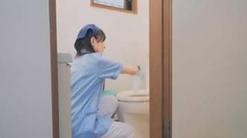 オフィス清掃員はトイレの清掃中につい魔が差してしまい自慰行為を初めてしまう。トイレのドアを締め忘れていることにも気付かない程熱中してしまい、社員に見つかってしまう。管理会社に報告するという社員に「どうかそれだけは」と食い下がる。すると社員から驚くべき提案が。職を失うか女としての尊厳を失うか究極の2択を迫られた清掃員の判断はいかに!?
